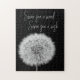Puzzle très difficile avec une photo macro originale noir et blanc d'un beau dandelion avec une citation inspirante dans une élégante police de calligraphie blanche qui dit "Certains voient une mauvaise herbe, Certains voient un voeu"