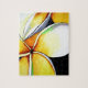 avec l'art original la conception de la peinture pour aquarelle par Sacha Grossel de jaune tropical et de blanc avec le vert de chaux accentue des fleurs de frangipani au foyer étroit, macro style. Cette conception botanique lumineuse, colorée, florale est réminiscente de l'été, de la culture de surf, du temps chaud et d'être près de la plage.