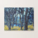 Photo originale d'une forêt d'arbres au bord d'une rivière. Photographie traitée avec un style illustratif et peintre avec un thème nocturne en bleu. Ce puzzle est de 11" x 14" dans la catégorie "défi" avec 252 pièces, mais vous pouvez dimensionner à votre guise. Ces puzzles sont bien faits de carton robuste monté sur carton. Ils sont imprimés dans des couleurs vives et viennent dans une boîte cadeau personnalisée avec le design d'image imprimé sur le dessus! Fabriqués aux États-Unis, ils font de grands cadeaux pour les enfants et les adultes.