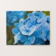 Photographie de fermeture (macro) d'une Hydrangée bleue.