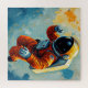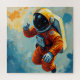 Un astronaute dans une combinaison orangée se dresse sur un fond cosmique plein de foudre colorée et de planètes lointaines. La scène dégage un sentiment d'exploration et d'aventure au milieu d'un paysage surréaliste et extraterrestre.