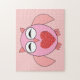 Ce puzzle impressionnant présente un dessin mignon d'une chouette rose aux yeux somnolents, un petit bec et de mignons petits pieds. Le hibou a un grand coeur d'amour rouge au milieu de son ventre et des ailes larges ouvertes prêtes à donner un gros câlin à quelqu'un.