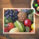 Photographie d'une variété de fruits colorés imprimés au bord du puzzle.