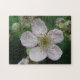 Ce superbe puzzle présente une photo d'une fleur de mûre blanche. La photo a été prise en utilisant la macro photographie pour un résultat détaillé. On y voit les détails fins comme la teinte rose sur les pétales blancs.