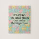 C'est toujours les petits morceaux qui font le grand tableau. Cela nous rappelle d'investir, de nous montrer et de nous concentrer sur chaque instant et chaque détail pour de vrai. En faisant ce puzzle pièce par pièce, vous méditez sur cette inspiration et vous imbibez cet idéal. Commencez la journée avec 5 minutes de ce puzzle vous donne le focus d'être présent tout au long de la journée.