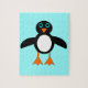 Ce superbe puzzle présente un joli personnage de pingouin avec un ventre blanc, de grands yeux bleus avec des élèves noirs et de mignons pieds et bec orange. Ce charmant petit oiseau d'hiver ravira petits et grands. Le pingouin s'assied sur un arrière - plan bleu pâle glacé pour lui rappeler sa maison arctique froide.