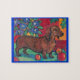 Cette illustration d'un teckel est une peinture acrylique par Lori DeLeonardis-Aman. Elle fait un beau puzzle pour des amoureux de les chiens de tous les âges.