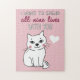 Ce puzzle romantique présente un chaton dessiné blanc et adorable sur un arrière - plan rose au coeur blanc. Avec sa légende qui dit "Je veux passer les neuf vies avec toi", c'est le cadeau parfait pour déclarer ton amour éternel.
