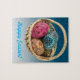 Ces beaux oeufs tirés par la main se dirigent vers un panier coloré de Pâques. Customisez le texte pour personnaliser le puzzle.