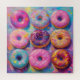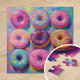 Un tableau abstrait moderne de beignes, éclatant de couleurs pastel vives, rose, jaune et aqua. La composition ludique comprend des coups de pinceau texturés et des formes fantaisistes, créant une interprétation vivante et délicieusement artistique de la douceur préférée de chacun. Cette pièce vibrante ajoute une touche contemporaine et amusante à tout espace.