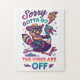 Un design coloré et dynamique, avec un raton laveur de dessins animés en casquette de cowboy, fait monter un coureur de dessins animés. Le texte coloré dit : "Désolé, les vibes sont éteintes". Ce design est disponible sur une grande variété de produits.