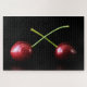 Two Cherries - Deux cerises douces (prunus avium regina) en vert vif et violet photographiées contre un arrière - plan noir clair. © Alan Harman Photography 2013. Tous droits réservés. www.alanharmanphotography.com 220518 jigsaw puzzle