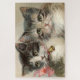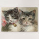 Vintage illustration of two cute little Victorian kittens with pink ribbon and bell.
