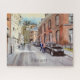Décor urbain moderne aquarelle dans la ville historique de Dinant, Belgique d'une aquarelle originale peinte par Daniel Fishback.