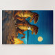 Fun and humorous puzzle! These T-Rex pals are camping together and roasting treats!