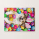 Puzzle Dog Laying on Easter Eggs