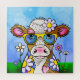 A hand drawn doodle portrait of a cute cow wearing sun-glasses:)