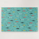 Le puzzle coloré présente des gribouillis de poisson modernes sur l'arrière - plan aqua