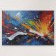 Piece together a burst of raw creative energy with this engaging jigsaw puzzle. The design features a dynamic abstract expressionism painting, showcasing explosive impasto brushstrokes and vibrant splatters of blue, orange, red, and yellow. A challenging and visually stunning activity that turns into a beautiful modern art masterpiece once completed.