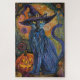 Embrassez l'esprit d'Halloween avec ce design enchanteur avec un chat mignon dans un casquette de sorcières entouré de citrouilles sculptés. Parfait pour ajouter une touche de charme éffrayant à vos célébrations festives.