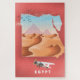 Egypt travel poster print illustration featuring the desert and a pyramid in the distance.
