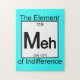 La Science a isolé un nouveau produit chimique dans la table périodique - l'élément de l'indifférence, abrégé comme MEH. Cette substance commune apparaît comme shrug verbal des épaules quand vous juste ne vous inquiétez pas. Chimie d'argot pour les masses - un cadeau parfait pour… quoi que.
