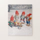 Un cadeau de Noël en un ! Ce puzzle de 11" x 14" a une image vintage de quatre elfes par jour enneigé. Un elfe a renversé sa motoneige qu'un autre trouve amusant. Les deux autres elfes regardent avec inquiétude. Voir carte de voeux, enveloppe, ballotin, étiquette cadeau, étiquette et autocollant correspondants. Voir l'ensemble de la collection Puzzle des Fêtes dans ACTIVITES | Section Puzzles.