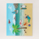 Profitez d'heures de plaisir avec cet adorable puzzle! Cette illustration de dessin animé présente une scène de plage très mignonne où deux enfants ont une explosion en direction du rivage où leur mère dort bronzer avec son ordinateur portable. Quelques canards jouent à proximité, un pilote vole au-dessus de l'eau et un bateau traverse l'océan. Ça aurait l'air bien d'être collé ensemble, encadré et accroché au mur ! Fait un cadeau parfait pour un enfant ou toute personne qui aime la plage!