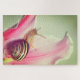 Ce puzzle a un escargot sur un pétale de fleur rose représenté dessus.