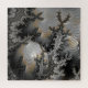 Un objet sphérique avec une surface réfléchissante est placé en évidence parmi des motifs complexes, comme des fractales, avec différentes nuances de gris, de noir et d'or. Les motifs complexes ressemblent presque à un paysage texturé, tandis que la sphère agit comme une lentille déformant et compressant les détails environnants.