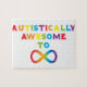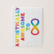 Design fait avec amour pour la Sensibilisation sur l'autisme. Les lettres arc-en-ciel forment l'expression "Autistiquement Awesome To Infinity" avec un symbole infinity.