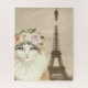 Vintage sepia tint background photo of the Eiffel Tower with overlay of beautiful watercolor fancy cat with floral crown