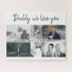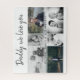 Père avec enfants et famille papa Photo Collage puzzle. Collage de 6 photos, le nom du père avec un message doux dans un script tendance et les noms des enfants qui superposent les photos. Ajoutez vos 6 photos de famille préférées. Bon sang et un cadeau pour l'anniversaire, la fête des pères ou Noël pour un père, un nouveau père ou un grand-père.