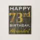 Cette conception de puzzle simple comporte le message "Joyeux 73ème anniversaire", avec le "73ème" ayant une apparence fausse or. Il est également doté d'un nom personnalisé et d'un arrière - plan d'apparence en faux bois. On pourrait le donner à quelqu'un qui célèbre son soixante-treizième anniversaire.