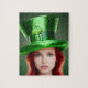 L'IA a généré une femme avec des cheveux rouges et un grand tophat vert pour la St. Patrick's Day