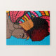 Puzzle Femme noire, Cheveux naturels enveloppés, Bleu col
