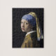 Girl with a Pearl Earring de Johannes Vermeer, 1665, est une huile sur toile peint d'une jeune fille en profil de trois quarts de vue en tournant doucement sa tête et en regardant chaleureusement le spectateur. Le foulard enveloppant et accroché à la tête du sujet est rendu dans des tons ensoleillés et contrastés de jaune chaud et de bleu cool, ici une teinte ultramarine ou bleu cornflower, un jeu de couleurs exploré dans de nombreuses compositions du maître hollandais. Son anneau d'oreille perle rayonne doucement en blanc surbrillance au centre de la composition. L'expression énigmatique de la jeune fille est intemporellement figée dans l'anticipation d'un sourire, d'un rire, ou d'une question du spectateur. Johannes (Jan) Vermeer (1632 - 1675) est un maître-peintre hollandais des scènes de genre intérieur dont les oeuvres ont été redécouvertes au 19ème siècle. Dans des compositions géométriques minutieusement construites, dessinées dans une perspective linéaire méticuleuse, Vermeer a exploré les effets de la lumière et de la couleur à travers des figures humaines, des objets et des textures dans des pièces intérieures éclairées au soleil, en s'appuyant sur les découvertes optiques et la profondeur de perspective 3D de Léonard et de la Renaissance. Peintre et marchand d'art, Vermeer produit lentement quelques-unes de ses compositions minutieusement exécutées, richement pigmentées par an, vivant entièrement dans sa ville natale de Delft, en évitant la renommée de ses proches contemporains Rubens et Rembrandt qu'il a finalement atteint dans l'ère moderne.