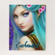 Belle fille mystique enchantée aux cheveux bleus et aux fleurs roses dans les cheveux et aux yeux bleus. Art de fantaisie contenu généré par l'IA.