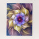 Fleur fractale rose et jaune avec Periwinkle et centre rouge sur arrière - plan bleu