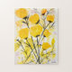 Un joli puzzle aux fleurs jaunes peintes à la main avec des tiges noires et un peu de violet mélangé dans.