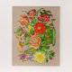 Puzzle dans un ensemble coloré de fleurs d'été multicolores disposées dans un panier - art botanique vintage, numériquement rehaussé et coloré, sur un arrière - plan beige