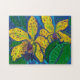 Jigsaw puzzle avec croquis floral expressif en couleurs vives, fleurs d'orchidées jaunes brillantes avec des pétales pointus sur arrière - plan bleu profond. Peinture pastel, 2021 © Clipso-Callipso / Julia Khoroshikh www.juliakhoroshikh.art #floralart #contemporaryfloral #abstractbotanical #yelloworchid #orchidflowers #expressionism #jigsawpuzzle #artpuzzle