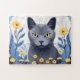 Puzzle Fleurs Jaunes Chat Bleu Russe