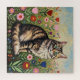 Puzzle Fluffy Gray Tabby Cat and Folk Art Flowers