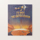 Fly West Beautiful détails chaleureux orange vintage style de navigation affiche de voyage vers les États-Unis.