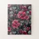 Puzzle Framboise, fleurs bordeaux sur gris foncé