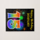 Cette conception amusante et vibrante de puzzle présente un motif coloré inspiré par des feux d'artifice festifs, ainsi que le numéro "15" avec un motif multicolore en dégradé d'inspiration arc-en-ciel, sur un arrière - plan de couleur noire. Il comporte également un nom et un message d'événement personnalisables, comme un message d'anniversaire. Un puzzle comme celui-ci pourrait être une façon amusante d’envoyer un message d’anniversaire pour souligner le quinzième anniversaire de quelqu’un. [~Z0000329]