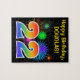 Cette conception amusante et vibrante de puzzle présente un motif coloré inspiré par des feux d'artifice festifs, ainsi que le numéro "22" avec un arc-en-ciel multicolore comme un motif dégradé, sur un arrière - plan de couleur noire. Il comporte également un nom personnalisé et un message d'événement, comme un message d'anniversaire. Un puzzle comme celui-ci pourrait être une façon amusante d'envoyer un message d'anniversaire à quelqu'un qui célèbre son vingt-deuxième anniversaire. [~Z0000329]