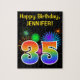 Cette conception amusante et vibrante de puzzle présente un motif coloré inspiré par des feux d'artifice festifs, ainsi que le numéro "35" avec un motif multicolore en dégradé d'inspiration arc-en-ciel, sur un arrière - plan de couleur noire. Il comporte également un nom et un message d'événement personnalisables, comme un message d'anniversaire. Un puzzle comme celui-ci pourrait être une façon amusante d’envoyer un message d’anniversaire pour souligner le trente-cinquième anniversaire de quelqu’un. [~Z0000329]