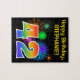 Cette conception amusante et vibrante de puzzle présente un motif coloré inspiré par des feux d'artifice festifs, ainsi que le numéro "42" avec un arc-en-ciel multicolore comme un motif dégradé, sur un arrière - plan de couleur noire. Il comporte également un nom et un message d'événement personnalisables, comme un message d'anniversaire. Un puzzle comme celui-ci pourrait être une façon amusante d’envoyer un message d’anniversaire pour célébrer le quarante-deuxième anniversaire de quelqu’un. [~Z0000329]